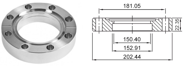 Фланец из нержавеющей стали стандарта CF8.0'' (CF160) с отверстием под трубу диаметром 6 дюймов для вакуумных приложений удовлетворяет самым высоким стандартам качества комплектующих CF.