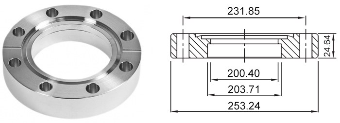 Фланец из нержавеющей стали стандарта CF10.0'' (CF200) с отверстием под трубу диаметром 8 дюймов для вакуумных приложений удовлетворяет самым высоким стандартам качества комплектующих CF.