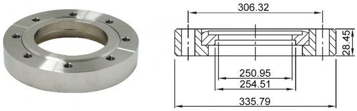 Фланец из нержавеющей стали стандарта CF13.25'' (CF270) с отверстием под трубу диаметром 10 дюймов для вакуумных приложений удовлетворяет самым высоким стандартам качества комплектующих CF.