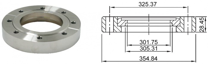 Фланец из нержавеющей стали стандарта CF14.0'' (CF300) с отверстием под трубу диаметром 12 дюймов для вакуумных приложений удовлетворяет самым высоким стандартам качества комплектующих CF.
