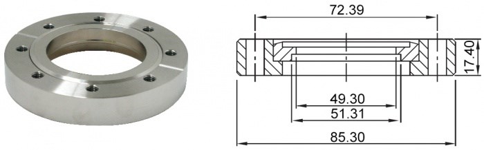 Фланец из нержавеющей стали стандарта CF3.38'' (CF35) с отверстием под трубу диаметром 2 дюйма для вакуумных приложений удовлетворяет самым высоким стандартам качества комплектующих CF.
