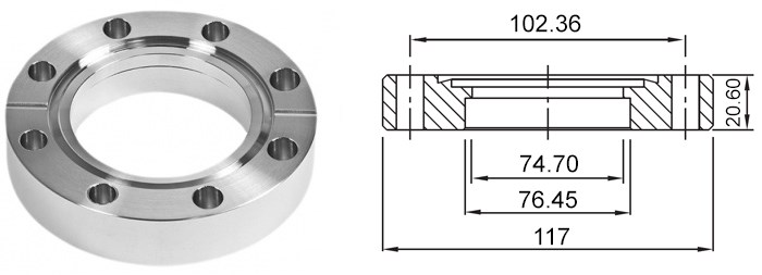 Фланец из нержавеющей стали стандарта CF4.62'' (CF80) с отверстием под трубу диаметром 3 дюйма для вакуумных приложений удовлетворяет самым высоким стандартам качества комплектующих CF.