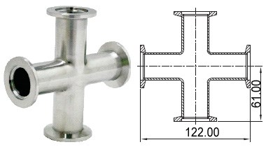 Крестовое соединение из нержавеющей стали для соединения вакуумных узлов стандарта KF40.