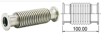 Вакуумный сильфон длиной 100мм из нержавеющей стали для соединения вакуумных узлов стандарта KF25.