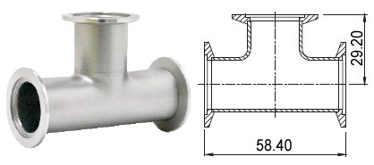 Тройник из нержавеющей стали для соединения вакуумных узлов стандарта KF16.